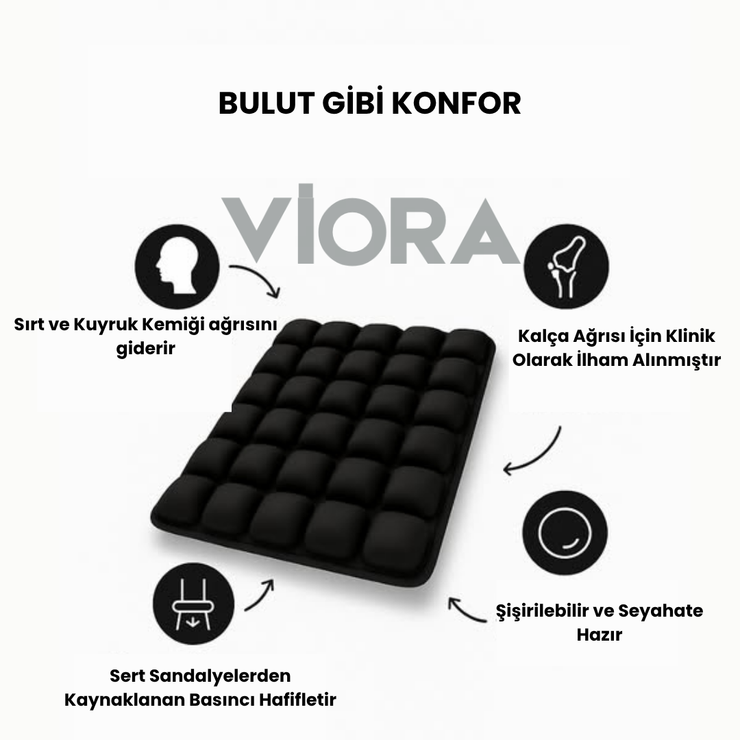 Uzun oturmalarda bel ve kuyruk sokumu ağrısını azaltır, kalça şeklinizi korur ve ayarlanabilir konforuyla her ortamda kişiye özel rahatlık sağlar.