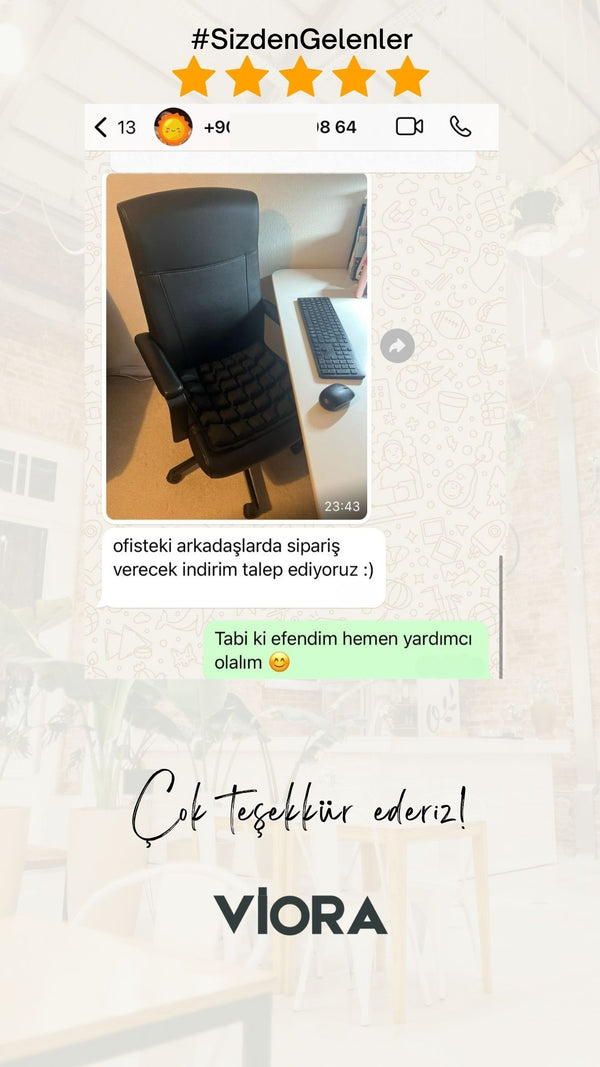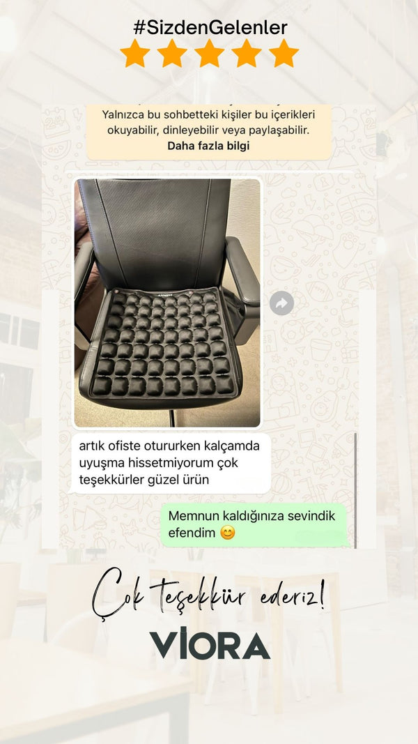 AĞUSTOS 2025CCem B.Doğrulanmış Kullanıcı3 saatlik toplantılarda artık belim ağrımıyor. Sert sandalyelere oturmak eskisi kadar kötü değil. Gerçekten konfor sağlıyor.AirDestek Minderi Bu yararlı oldu mu ? 0 0
