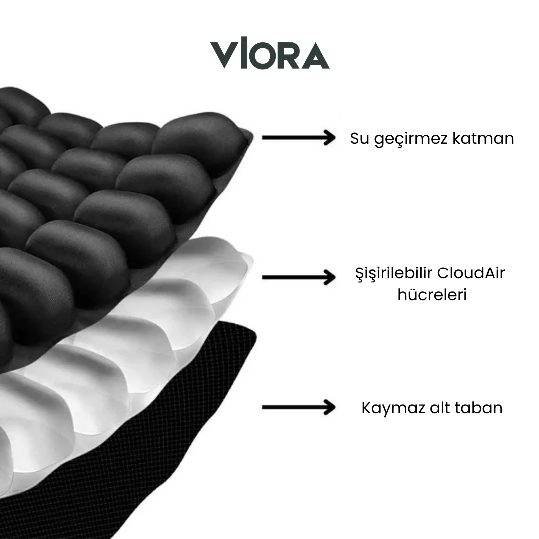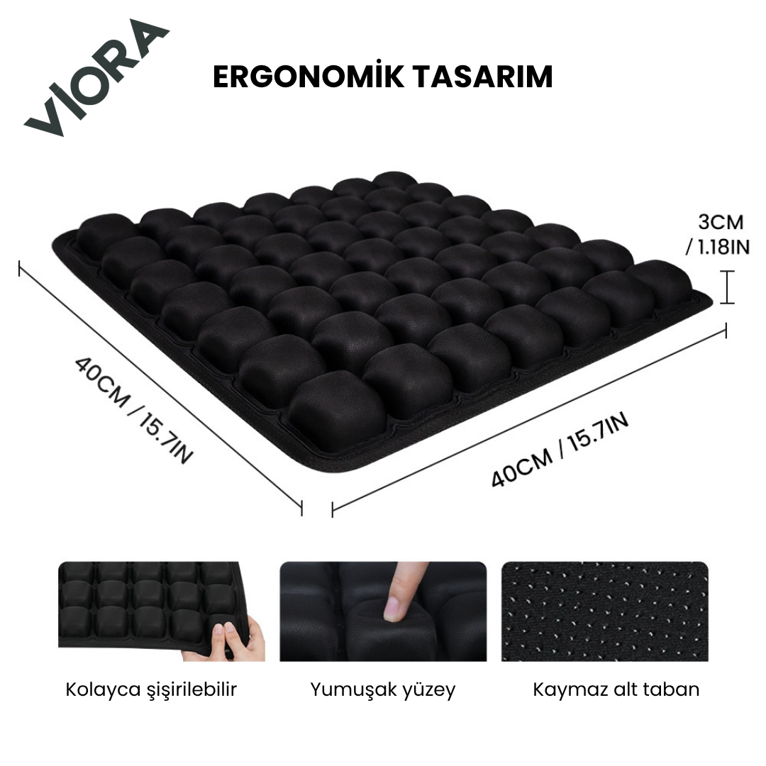 -Zamanla düzleşen köpük veya jel pedlerin aksine, bu minder vücudunuza uyum sağlayan dinamik bir hava hücresi sistemi kullanır, basıncı eşit şekilde dağıtır ve omurganız ile kuyruk sokumunuzdaki gerginliği azaltır.
