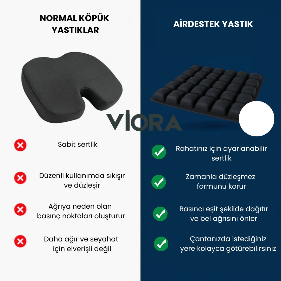 Sert sandalyelerde uzun saatler geçirmek artık kabus değil. AirDestek yastık, sırt ve kuyruk sokumu üzerindeki baskıyı ortadan kaldırır, daha dik oturmanızı ve ağrısız bir gün geçirmenizi sağlar.