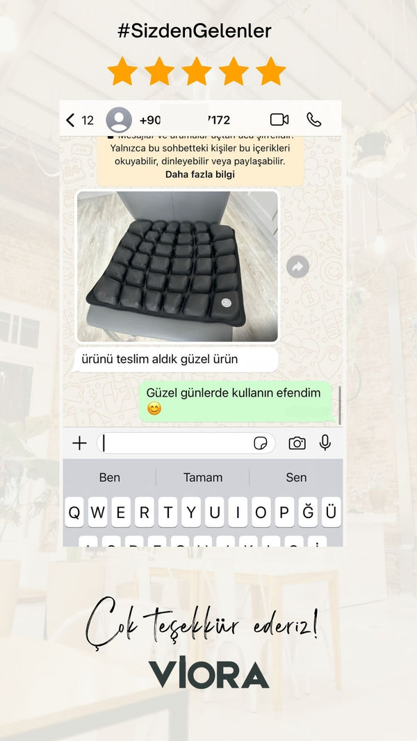 AĞUSTOS 2025SSerhat E.Doğrulanmış KullanıcıUzun oturduğumda uyuşma oluyordu. Bu minderle hem ağrılarım azaldı hem de daha dik oturuyorum. Almayı düşünenlere kesinlikle tavsiye ederim.AirDestek Minderi Bu yararlı oldu mu ? 0 0