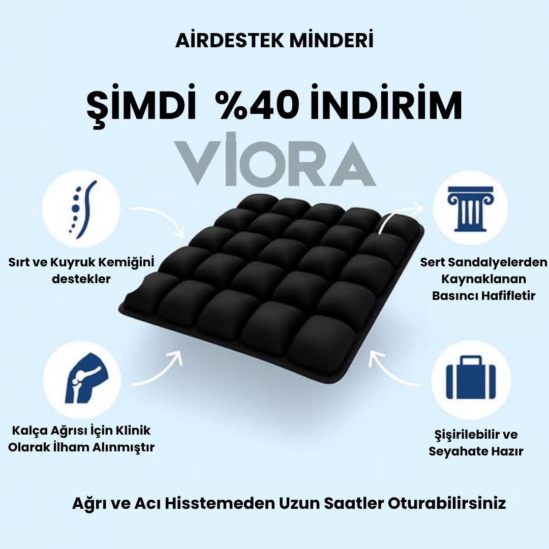 AirDestek minderi ürünümüzü deneyin, memnun kalmazsanız 30 gün içinde sorgusuz sualsiz iade edin. Konforunuza %100 güveniyoruz.